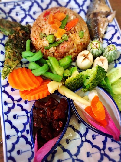 วันนี้เป็นวันแตกขนม เพื่อนอยากทานขนมเทียนที่เราทำ เลยนัดเจอกันที่ร้านนี้ ที่มีชื่อเรื่องขนมไทย ทางมาลึกลับหน่อยเพราะต้องลอดใต้ทางด่วนจึงจะมาเจอร้านอยู่สุดทาง ร้านเล็กๆที่ทำเป็นเรือนกระจก ล้อบรอบด้วยต้นไม้ เฟอร์นิเจอร์เป็นเครื่องไม้เก่าสวยงาม วันนี้สั่งข้าวผัดน้ำพริกลงเรือ ข้าวผัดรถไฟไก่ไข่ออนเซน ขนมจีนซาวน้ำ ราคา 100 กว่าจค้น แต่จัดมาอลังสมราคา รสชาติก็ดี ขนมไข่นกกระสา อร่อย ขนมโคก็อร่อยมากๆ อี...อ่านต่อ