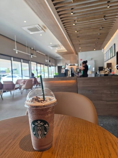 100% ของรีวิวบอกว่าร้านนี้เหมาะกับ เพื่อนฝูงช็อกโกแลตปั่นรสชาติอร่อยตามมาตรฐานสตาร์บัคราคาขนาดนี้คุ้มค่าคุ้มราคาอยู่แล้วครับผมกินเมื่อไหร่ก็ไม่เคยผิดหวังร้านเปิดตั้งแต่ 6 โมงครึ่งจนถึง 20:00 น ยาวๆกันเลยสาขานี้อยู่ตรงบางจากพอดีลงมาจากมอเตอร์เวย์ก็เจอเลยดูเพิ่มเติม