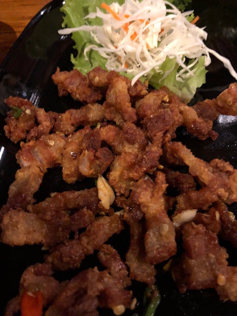 อาหารรสชาติใช้ได้เลย พล่าหมูมะเขือ สามขั้นคั่วพริกเกลือ บรรยากาศการแต่งร้านสะอาดสบายๆ
