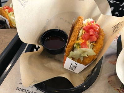 ทาโก้สไตล์ No!แป้ง โดยนำเนื้อไก่กรอบ คลุกเคล้าเครื่องเทศรสชาติจัดจ้านตามสไตล์เม็กซิกันมาห่อแทนแป้งทาโก้ ด้านในมีผักสด ซาวครีม และเชดด้าชีส