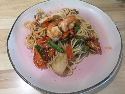 สปาเก็ตตี้ขี้เมาทะเล Spicy Spaghetti Seafood (Pad Kee Mao)