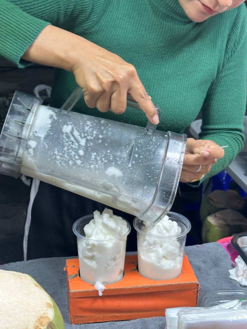 100% ของรีวิวบอกว่าร้านนี้เหมาะกับ เดลิเวอรีร้านตั้งอยู่ในตลาดโชคชัย เริ่มขายตอนเย็นๆถึงช่วงกลางคืน หลานสะพายน้ำผลไม้ปั่น อย่างน้ำมะพร้าว น้ำส้มและน้ำแตงโม ในราคาที่ทุกอย่าง 40 บาท ตัวน้ำมะพร้าวปั่นสดใหม่ รสชาติหวานมันหอมอร่อย ปั่นมาแบบไม่ละเอียดมาก เดินตลาดร้อนๆ กินชื่นใจ #Wongnai2026ดูเพิ่มเติม