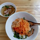 ร้านตั้งอยู่ในโชคชัย 4 ซอย 84 แยก 2-1 เปิด 8:30 น ถึง 17:00 น หยุดทุกวันอาทิตย์ เป็นร้านป๊อกป๊อกที่ไม่ใช่รถเข็นบรรยากาศร้านเล็กๆน่ารักๆ ร้านดูสะอาด โปร่งโลง ที่จอดรถหน้าร้านเยอะ ร้านขายบะหมี่เริ่มต้นที่ชามละ 50 บาท จะเลือกเป็นบะหมี่ 2 ก้อนหรือจะเลือกเป็นบะหมี่+ เกี๊ยวก็ได้ แต่ถ้าอยากกินเส้นไม่อั้นแนะนำให้เพิ่มเป็น 70 บาท สั่งตัว 50 บาทมาปริมาณก็คือทั่วไป รสชาติก็อร่อยปกติ มาพร้อมกับน้ำซุปมีเล...อ่านต่อ