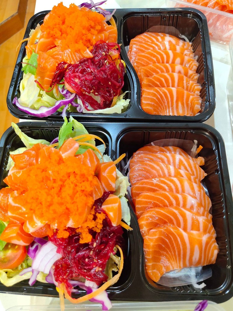 ราคาสุดคุ้ม 1 กล่องได้ทั้งซาซิมิ 100 กรัม และยำแซลมอนซีฟู้ดวาซาบิ