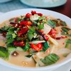 มาตอนเที่ยงไม่ค่อยมีคน ร้านสะอาด พนักงานแนะนำอาหารดี ตอนแรกเห็นชื่อร้านนึกว่าจะมีแต่แกงเขียวหวาน แต่ก็มีอาหารไทยอย่างอื่นด้วย รสชาติอร่อยดี - ต้มแซ่บกระดูกอ่อน: เผ็ดดี เนื้อหมูนิ่ม - ปูนิ่มทอดกระเทียม: ทอดกรอบอร่อย เสิร์ฟพร้อมซอสพริกและน้ำจิ้มซีฟู้ด เครื่องดื่มก็มีให้เลือกหลากหลาย กาแฟ เมนูแปลกๆ เช่น Mint Milk เป็นนมรสมิ้นท์ ได้กลิ่นมิ้นท์เบาๆ ผสมนมดูเพิ่มเติม