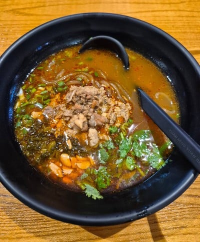 100% ของรีวิวบอกว่าร้านนี้เหมาะกับ เพื่อนฝูงบะหมี่น้ำ สำหรับภูเก็ต ในเมื่อก่อน ก็คงมี บะหมี่น้ำฮกเกี้ยน ซุปหัวกุ้ง ชายสี่หมี่เกี๊ยว ซุปกระดูกหมู ประมาณนั้น แต่ปัจจุบัน มีร้านเข้ามาเยอะมาก เราเลยได้ชิมบะหมี่น้ำจากที่อื่น ร้านนี้ก็เช่นกัน เป็นบะหมี่จากจีน สีสันสวยงาม ด้วยซอสหมาล่า ผมสั่งแบบเผ็ดปานกลาง ซึ่งผมว่าเหมาะมาก ไม่เผ็ดไป ลิ้นเราจะได้ไม่ชา น้ำซุปเค้า อร่อยกลมกล่อม และมีรสชาติลึกซึ้ง ไม่ต้องปรุงใดๆเพิ่มเลย เส้นอาจจะแปลกสักนิดสำหรับ...อ่านต่อ