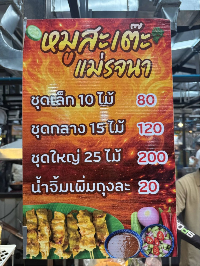 ร้านหมูสะเต๊ะ แม่รจนา เจ้าเก่าแปดริ้ว ขายอยู่ที่ตลาดนัดสัมมากร รามคำแหง 🐽มีชุดเล็ก กลาง ใหญ่ให้เลือก เราเลือกไซส์กลาง (15 ไม้ ราคา 120฿) น้ำจิ้มที่ร้านเป็นสูตรมะขามด้วย อร่อยดี มีความเผ็ดเล็กน้อย texture ถั่วเยอะ ชัดดี ส่วนหมูสะเต๊ะก็รสชาติโอเคตามมาตรฐาน #Wongnai2026ดูเพิ่มเติม