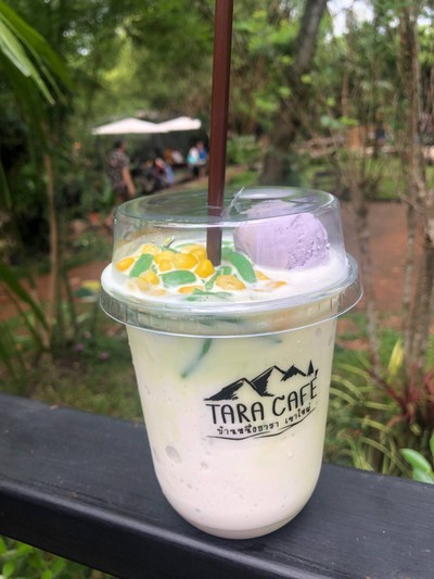 ร้านคาเฟ่ริมลำธาร ร้านบรรยากาศดีมากค่ะ พื้นที่กว้างขวาง และคนเยอะมากเลย สั่งเครื่องดื่มแล้วรอประมาณ 20-30 นาที ระหว่างนั้นก็ไปเดินเล่น ถ่ายรูปรอ Tara Coconut Fleppe เหมือนกินขนมหวานน้ำกะทิ ชานมเย็นก็พอใช้ได้ ไม่เข้มข้นเท่าไร แต่หวานกำลังดี ราคาไม่แพง ร้านตกแต่งดีค่ะ ธรรมชาติสุดๆคร่าดูเพิ่มเติม