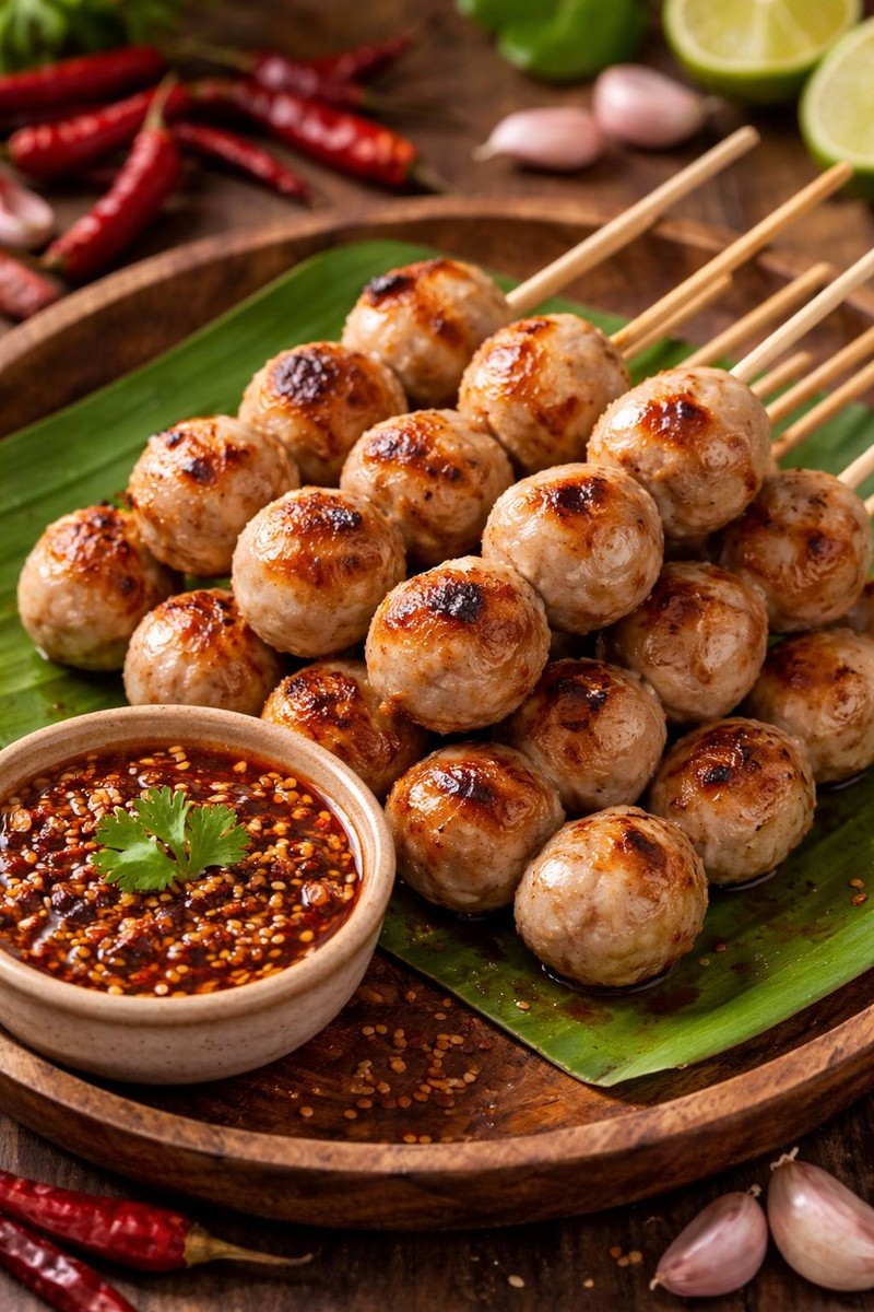ลูกชิ้นปิ้งน้ำจิ้มพ่นไฟ🔥 สูตรลับ
