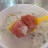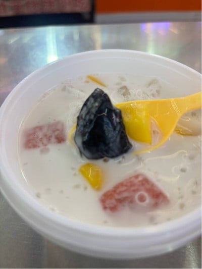 ร้านพุดดิ้งนม สั่ง ชื่อเมนูไม่รู้ นึกว่าเป็นพุดดิ้งนมใส่ผลไม้ 9.9RMB ประมาณเกือบ 50฿ พอมาทานปรากฎว่าเป็นน้ำกะทิชาวเกาะ (แบบน้ำกะทิแกง ที่คนจีนชองซื้อมาดูดกินเล่น) ถ้าเขาใช้สูตรอบควันเทียนจะอร่อยกว่านี้ แต่ไม่แน่ใจ คนจีน อาจจะยังไม่เข้าใจกลิ่นควันเทียน ใส่เครื่องลูกเดือย มะม่วง แตงโม และเม็ดแป้งแต่งสี #Wongnai2026ดูเพิ่มเติม