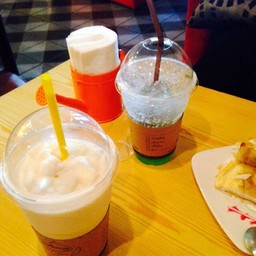 ร้านนี้สะดุดตาตรงแก้วกาแฟใบใหญ่สีส้ม ร้านอยู่ริมถนนเลยสังเกตุง่าย ร้านปรับปรุงจากบ้านพักอาศัยทำเป็นร้านกาแฟด้านหน้า ตกแต่งน่ารัก ดูน่านั่ง ในตู้เย็นมีขนมเค้กหลากหลายชนิดวางเรียงรายแต่ไม่ได้ลองชิม อยากทานกาแฟเลยสั่งลาเต้เย็น รสชาติก็พอได้นะแต่เราว่ามันเข้มไปสำหรับเราดูเพิ่มเติม