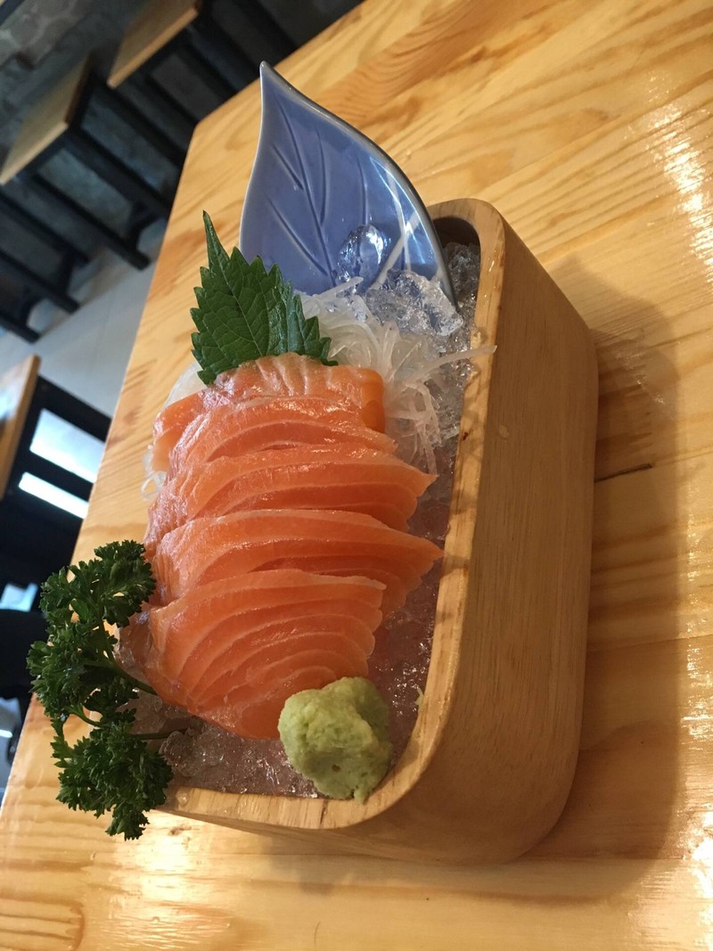 ร้านใหม่เล็กๆในบริเวณตึกหรูหรา ทางเข้ารถติดเพราะอยู่ย่านใกล้ๆยูดีทาวน์ค่ะ 555 โต๊ะมีไม่เยอะ เมนูทั่วไปค่ะ ราคากลางๆค่อนไปสูง ส่วนตัวรับได้กับราคาประมาณนี้ สั่งหลายอย่าง ไม่ถึง 1000 -แซลม่อนซาชิมิ สดใหม่ใช้ได้ค่ะ -ปลาหมึกวาซาบิ อันนี้แปลกกว่าที่เคยเจอเพราะใช้ปลาหมึกใหญ่ทำ วาซาบิขึ้นจมูกเต็มที่ 55 -ยำแซลม่อน อันนี้ขอแนะนำเลยว่ารสชาติดีมากๆค่ะ เผ็ดแซบกลมกลืนดี อร่อยย -เอ็นกาวะซูชิ ข้าวใหญ่กว่าเอ็น...อ่านต่อ