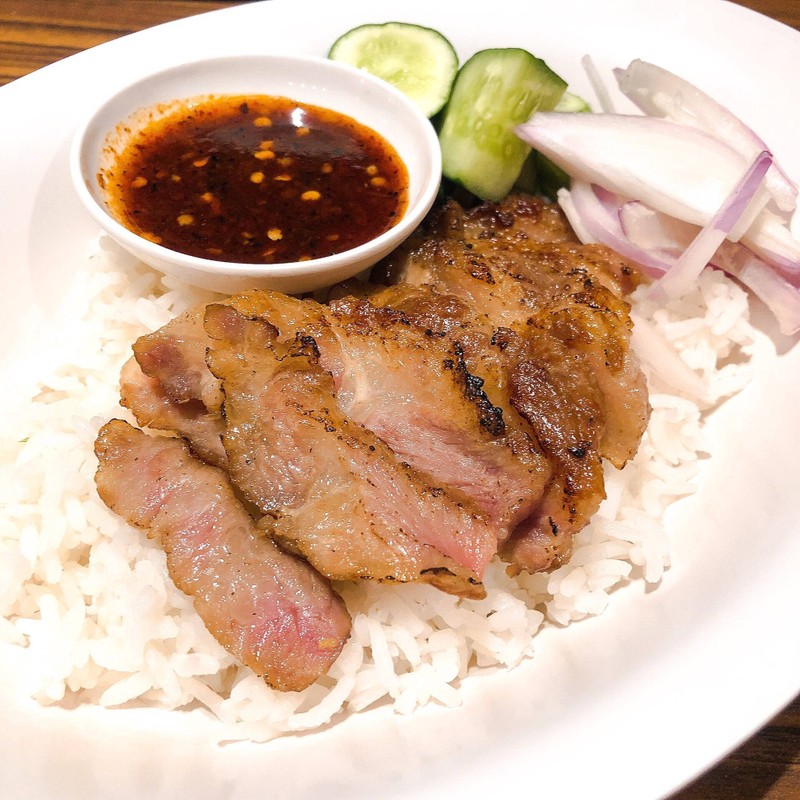 เมนูเด็ดต้องลอง! เนื้อติดมันย่างสุกกำลังดีโปะมาบนข้าวสวยร้อนๆ ทานคู่กับน้ำจิ้มแจ่วสูตรเด็ดของร้าน