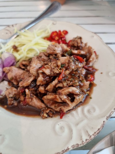 ร้านอยู่แถวถนนบรม มีที่จอด กว้างขวาง บรรยากาศในร้านเต็มไปด้วยต้นไม้ ร่มรื่น เหมาะกับครอบครัวพาเด็กมาดูปลาได้ รูปแบบอาหารเป็นอาหารไทย เมนูที่สั่ง หมูผัดกะปิ แกงสิงหล ห่อหมกปลากราย วุ้นเส้นผัดซอสไข่เค็ม ส่วนตัว ชอบวุ้นเส้นผัดไข่เค็ม และหมูผัดกะปิ ส่วนห่อหมกปลากรายรู้สึกtextureคล้ายๆลูกชิ้นปลากราย สั่งเครื่องดื่มเป็นลิ้นจี่กุหลาบและน น้ำผึ้งมะกรูดสด ทานแล้วรู้สึกสดชื่น สั่งขนมเป็นบวดข้าวโพดและอ...อ่านต่อ