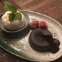เค้กช็อกโกแลตเข้มข้นไส้ไหลเยิ้มเสริฟพร้อมไอศกรีมและสตอเบอรี่เย็นฉ่ำ