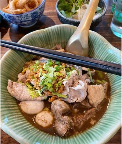 ร้านก๋วยเตี๋ยวเรือที่มายกระดับของวงการก๋วยเตี๋ยวเรือ ด้วยราคาที่ค่อนข้างสูง ซึ่งแน่นอนว่า วัตถุดิบของเขานั้นต้องไม่ธรรมดา โดยมีหลากหลายเมนูที่ให้เราเลือกทั้งหมูทั้งเนื้อ มีหลากหลายชนิดของเนื้อและหลากหลายชิ้นส่วน ซึ่งจากที่ได้ลองทาน ที่ความเผ็ดระดับ 2ถือว่าไม่เผ็ดมากทานสบายๆ ตัวเนื้อวัวไม่เหนียวทานง่าย อร่อยกำลังดี แต่น้ำให้มาน้อยไปหน่อย แต่รสเข้มข้น ใช้ได้เลย ส่วนเมนูหมูเนื้อก็ดีเช่นกัน ทานอร่อ...อ่านต่อ