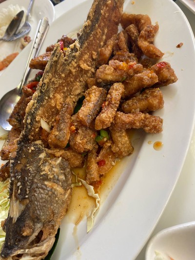 ร้านนี้ที่จอดรถกว้างขวาง มีโต๊ะเยอะ ร้านสอาดสอ้านน่านั่งเยอะ อาหารรอไม่นาน แต่ผิดหวังเรื่องอาหารมาก ที่สั่งมารสชาติใช้ได้แค่ปลากระพงสองแคว นอกนั้นธรรมดาแบบไม่น่าแพง หมูสามชั้นทอดน้ำปลาเย็นฉืด หนังแข็งไม่อร่อย กุ้งซอสมะขามรสชาติไม่ถึง อย่างอื่นก็แค่พอทานได้ อาหารเหมือนทำไว้แล้ว ส้มตำขนุนรสชาติเฝื่อนๆ เป็นขนุนดิบต้องทานคู่น้ำยำ แต่ถ้าให้สั่งคงไม่สั่งอีกดูเพิ่มเติม