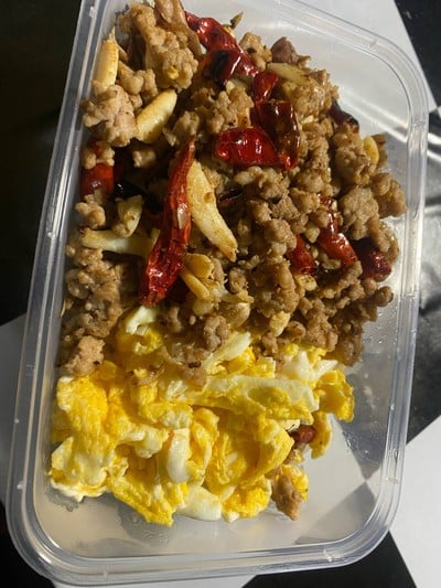 บังเอิญเจอร้านนี้ในไลน์แมน เลยจัดไป3เมนู เด็ดทุกเมนูคะ ส่วนตัวชอบสุดคือข้าวหมูสับผัดพริกกระเทียมไข่ขยี้ ถูกใจมากคะเป็นคนไม่กินใบกระเพราไปสั่งผัดกระเพราไม่ใส่ใบกระเพราก้ไม่ได้รสชาตินี้คะ ฝากตัวเป็นลูกค้าอีก1คนนะคะ 3เมนูเด็ดถูกปากทุกเมนูคะดูเพิ่มเติม