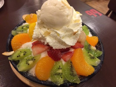 ...ตอนนี้ขอโหวตร้านนี้เป็นบิงซูที่ปลื้มสุดตอนนี้เลยค่ะ คุณภาพคับถ้วยมากๆ ชอบสุดคือ mixed fruit bingsu ค่ะ เนื้อผลไม้แน่นมาก ฟินเวอร์ เกล็ดนมก็ละเอียดดีค่ะ ชอบลิ่นจี่กับกีวี่มาก อร่อย ส่วนช็อคโกแลตก็ไม่น้อยหน้าค่ะ มีหลายชนิดมาก มีเป็นบอลด้วย แต่ก็ไม่ปังเท่า mixed fruit นะคะดูเพิ่มเติม