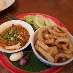 อาหารเหนือ มาจากเชียงใหม่ รสชาติจัดจ้านเหมือนยกเชียงใหม่มาเลย น้ำพริกอ่อง มาเป็นเซ็ท รสชาติออกหวานนิดหน่อย ทานคู่กับแคบหมู เข้ากันดี หมูย่างจิ้มแจ่ว ให้หมูมาค่อนข้างเยอะ ทานคู่กับน้ำจิ้มแจ่วเผ็ดจัดจ้าน ข้าวผัดน้ำพริกหนุ่ม เผ็ดสุด มีไส้อั้วมาให้ด้วย โดยรวมเป็นร้านที่ดีเลย บรรยากาศก็ดีด้วยดูเพิ่มเติม