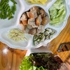 แหนมเนืองรสชาติกลางๆ น้ำจิ้มแลดูน้อยไปนิด แต่ผักที่ให้ดีงามล้านแปด สด สวย หลากหลาย กุ้งกระเบื้อง ดีงามไม่อมน้ำมัน ปากหม้อญวน รสชาติกลางๆ ข้าวเปียกมาถ้วยใหญ่มาก ตกใจกับความใหญ่ เล้งชิ้นก็ใหญ่ รสชาติทานง่าย แต่เติมพริกไปแล้วรสดีงามเข้มข้นดีดูเพิ่มเติม