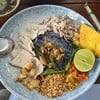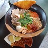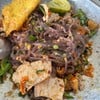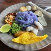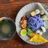 #Wongnai2024 ร้านนี้อยู่เส้นสันป่าตองแม่วาง เป็นร้านก๋วยเตี๋ยว เรือนไม้ ที่จอดรถมีสะดวก พนักงานบริการดี เมนูหลักของที่นี่เป็นก๋วยเตี๋ยวอัญชัน เส้นก๋วยเตี๋ยวนุ่ม ไม่เละ สีฟ้าอัญชัน เราสั่งก๋วยเตี๋ยวอัญชันยำแห้งสุโขทัยโบราณ แบบมัฃสวิรัติ ทางร้านเลยใส่ไข่มาให้แทนค่ะ ได้มาแล้วเราก็คลุกก่อนนะคะ รสชาติโดยรวมถือว่าอร่อย ใช้น้ำตาลปีบ กับมะนาวแท้ ปรุงรส เส้นกอดกันนิดหน่อย แต่ก็ไม่ได้แห้งจนเกินไปค่ะดูเพิ่มเติม