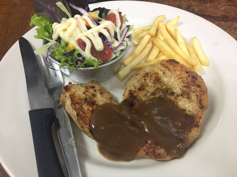 ร้านดีเลยราคาไม่แพง อยู่ใต้ตึกพิศวิทย์ เท่าที่ถามมาร้านเปิดไวมากแต่เช้า 7-8 โมง ปิดประมาณ 3 ทุ่ม แต่เวลาปิดร้านบอกว่ายังไม่แน่นอนเพราะเพิ่งเปิดร้าน เราสั่งสเต๊กไก่รสชาติโอเคเลย เป็นแบบสไตล์ home made ลอกหนังไก่ให้ด้วย เหมือนเป็นอกไก่แต่ไม่แห้งเลยนุ่มกำลังดี วันหน้าจะลองสั่งอย่างอื่นบ้างดูเพิ่มเติม