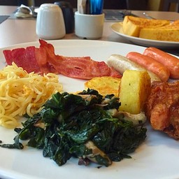 อาหารเช้าบุฟเฟต์ อาหารหลากหลาย มีชีสให้เลือกหลายแบบ มี smoked salmon, salami ขนมปังและเบเกอรี่หลากหลายมาก ครัวซองใช้ได้ กรอบนอก นุ่มใน หอมเนย นอกจากอาหารฝรั่ง ก็มีไลน์อาหารไทย ก๋วยเตี๋ยว และขนมจีน ขนมจีนน้ำยา อร่อยดูเพิ่มเติม