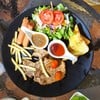 คาเฟ่ที่มีบริเวณกว้างขวางมาก มีแปลงปลูกผัก โรงเรือนเมล่อน บ้านพักรีสอร์ท ที่สำคัญติดลำธารขนาดใหญ่ สามารถลงเล่นน้ำได้ เราสามารถนั่งทานอาหารริมลำธารได้ ทางร้านมีรถพ่วงข้างขับส่งอาหาร ข้าวเครื่องแกงทะเล รสชาติพอใช้ได้ ผัดมาแบบน้ำเยอะไปไหน ข้าวค่อนข้างแข็งน่าจะเป็นข้าวปากหม้อ เครื่องดื่มน้ำมะม่วงปั่น รสชาติดี แต่งแก้วได้สวยงามดูเพิ่มเติม