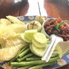 ร้านอาหารพม่า บรรยากาศอึมครึมนิดหน่อย เพราะต้นไม้เยอะ ทำมห้ไม่ร้อนมากแต่ยุงเยอะมากกก วันนี้ได้สั่งน้ำพริกพม่ามาพร้อมผักสด รสชาตคล้ายน้ำพริกกุ้งเสียบ ตองอู เต้าหู้สอดไส้หมูและกุ้งทอง รสชาตดีทีเดียว ยำผักกูด อันนี้เปรี้ยวมะนาวปลอมมากๆ ไม่ผ่านดูเพิ่มเติม