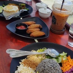 คาเฟ่เล็กๆ ที่เกาะยอ ริมทะเลสาบสงขลา ที่ร้านมีอาหารจานเดียว 2 เมนู คือ ข้าวมันแกงไก่ และข้าวยำ มีเมนูของกินเล่น พวกเฟรนช์ฟราย และเค้ก เครื่องดื่มพวกชากาแฟ อิตาเลี่ยนโซดา ร้านเป็นที่นั่งแบบเปิดโล่ง มีแบบใต้อาคาร กับใต้ต้นไม้ นั่งรับลมชิลๆ ได้ ถ้าวันที่แดดไม่ร้อนจะยิ่งสบาย ข้าวมันแกงไก่อร่อยดี ข้าวหอม แกงกะทิไก่อร่อย ไม่เผ็ด มีกุ้งแก้วให้รสหวานๆ และได้ความกรอบเค็มจากปลากรอบตัวเล็กๆ มีความเผ็ดเ...อ่านต่อ