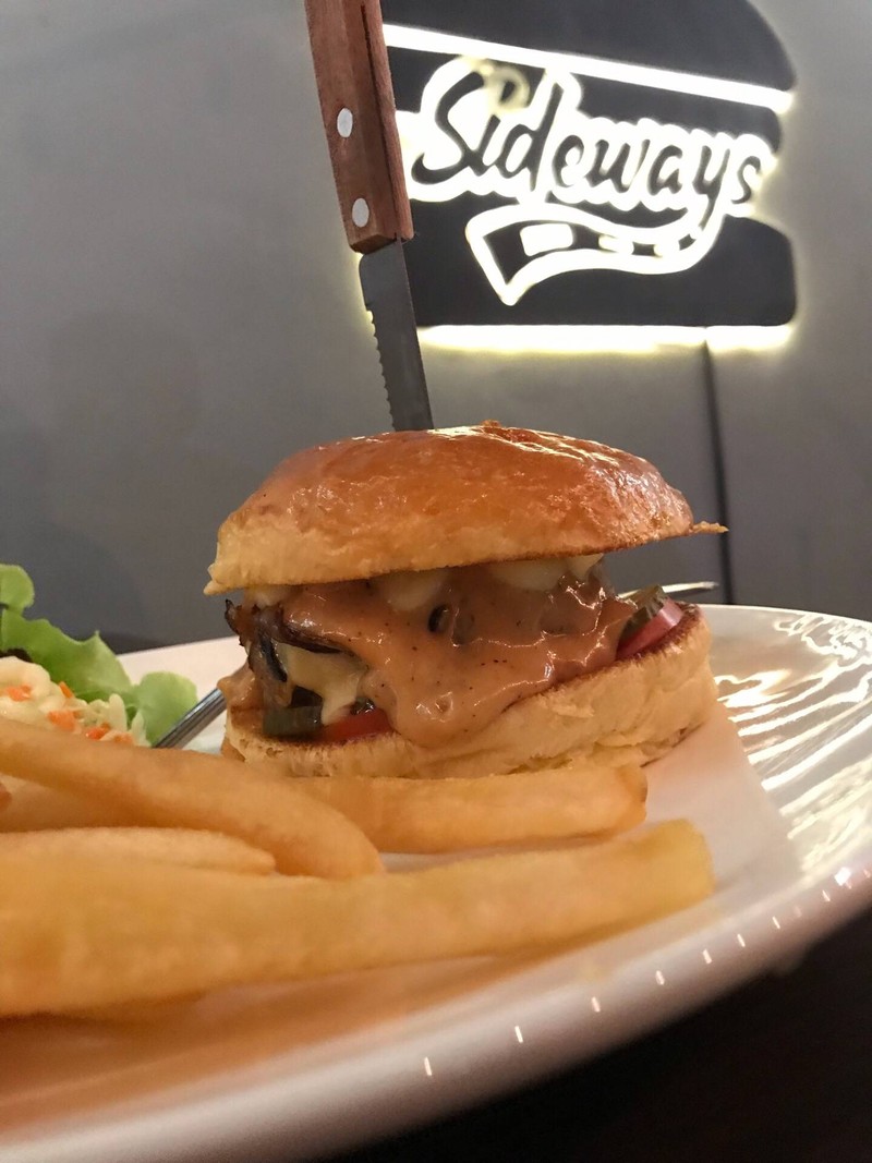 ร้านเบอร์เกอร์ริมถนนที่แทบจะทำให้ลืมไปเลยว่านี่คือริมถนน ตัวร้านตกแต่งเรียบๆแต่สวยงาม อยู่หัวมุมปากซอย หลบหลังมุมอาคาร ถ้าขับมาไวๆไม่สังเกตนี่ขับเลยแน่นอน เนื้อเบอร์เกอร์ย่างออกมาได้ดี มีความชุ่มฉ่ำ ใครชอบเบอร์เกอร์เนื้อควรมาลิ้มลองกันครับ ซอสรสชาติดี ทั้งซอสบาร์บีคิวและซอสลับของทางร้าน เมนูเบอร์เกอร์จะเสิร์ฟมาพร้อมเฟร้นช์ฟราย และผักสลัด เครื่องดื่มมีให้เลือกทั้งน้ำเปล่า น้ำหวาน ค็อกเทล และเ...อ่านต่อ