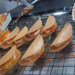 ขนมเบื้องขายช่วงค่ำ ตรงโซนอาหารเยาวราช อยู่ใกล้ร้านยู้ลูกชิ้นปลา ขายเป็นชุด ชุดเล็ก ชุดละ 60฿ มี 4 ชิ้น และแบบชุดใหญ่ 100฿ เลือกแบบชุดเล็ก ไส้หวาน 2 / ไส้เค็ม 2 ตัวแป้งกรอบโอเค ไม่กระด้าง ครีมให้เยอะ คนชอบครีมน่าจะชอบ ตัวครีมชอบให้เหนียวกว่านี้อีกหน่อย ฝอยทองนุ่มดี ส่วนไส้เค็มรสกลมกล่อมหอมมะพร้าว ชิ้นกำลังดีดูเพิ่มเติม