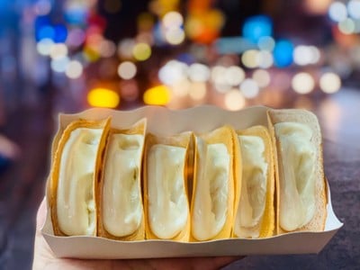 21% ของรีวิวบอกว่าร้านนี้เหมาะกับ ครอบครัวหรือเด็กอยากทานขนมเบื้องตอนจะเที่ยงคืน เลยเปิดหารร้านเจอร้านนี้เปิดถึงเที่ยงคืน ร้านอยู่เยาวราช มีร่วมโปรค่าส่ง เราส่งไส้หวาน 4 ชิ้น 80฿ ไส้เค็ม 4 ชิ้น 80฿ ค่าส่ง 29฿ ไส้หวานครีมเยอะดีแต่ไม่เยอะจนเลี่ยน รสชาติดีหสานแบบไส้หวาน สำหรับเราสายหวานถือว่าไม่เลี่ยน ไส้เค็ม ไส้ครีมเยอะกำลังดี ไส้ออกเค็มตัด อร่อยไปอีกแบบ เหมาะสำหรับคนไม่ชอบทานหวานมากค่ะดูเพิ่มเติม