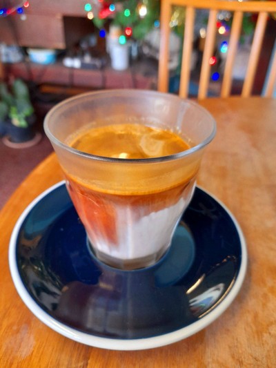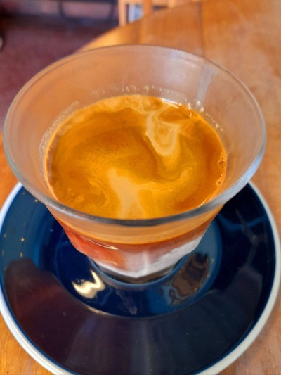 ... คาเฟ่นี้อยู่ไม่ไกลจากตลาดในเมืองนัก สามารถหาที่จอดรถแล้วเดินไปที่ร้านได้ ที่ร้านเป็นห้องแอร์ในตึกคูหาเดียว ไม่ได้ใหญ่โตมากมายอะไร แต่บรรยากาศดีอยู่นะ น่านั่งจิบเครื่องดื่มชิลล์ ๆ 🤩🤩🤩 . . . Dirty coffee ที่สั่งมาสีสันสวยงาม ตัดชั้นนมกับช็อตกาแฟเข้ม ๆ มาสวยดี กาแฟหอมรสเข้ม กับนมมัน ๆ เข้ม ๆ โอเคเลย 😊 ... Espresso เป็นเอสเย็นสไตล์ไทย สั่งหวานน้อย สั่งเป็นแก้วกระดาษแบบกลับบ้าน กาแฟรสชาติใ...อ่านต่อ