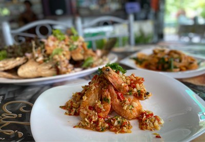 เมนูเด็ด: Caprese salad, กุ้งชุปแป้งทอด, ปลากระพงทอดราดน้ำปลา, กุ้งทอดราดซอสมะขาม, กุ้งย่างเนยกระเทียม, กุ้งผัดพริกเกลือ, ซีซ่าสลัด, คาเปเซ่สลัด, ตำข้าวโพดไข่เค็ม, ปลา, กุ้ง, ค