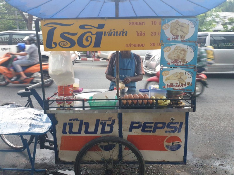 ☆พิกัด☆ หน้าเซเว่นใหญ่ตรงข้าม รพ สวนดอก 🚙ไม่มีที่จอดรถ ☆อาหาร☆ 😔โรตีกล้วย ไข่ ชีส 40 บาท รสชาติไม่ว้าว กล้วยยังไม่สุกดี ไม่ค่อยนุ่มไข่ มีกลิ่นชีสบางๆ รู้สึกรวมๆคือแปลกๆ รสชาติ 🐽🐽🐽 ความสะอาด 🐽🐽🐽🐽 บรรยากาศ ซื้อกลับมากินดูเพิ่มเติม