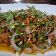 หอยเชลล์ทอดกระเทียม รสชาติกรอบนอกนุ่มในกับซอสหวานๆมีผักแนมคู่กันผักสดซอยละเอียด น้ำพริกศรีราชา ก็อร่อยเข้ากันดี ข้าวผัดกุ้ง ข้าวผัดกุ้งออกรสหวานนิดหน่อย กุ้งตัวโตให้มา 6-7 ตัว ข้าวอาจจะดูแชะไปนิดนึง แต่รสชาติใช้ได้ กินคู่กับน้ำปลาพริกทำสดๆบีบมะนาวอร่อยเลย ยำไข่ปู พิเศษของจานนี้คือการซอยหอมได้ละเอียดมาก คลุกเคล้าได้อย่างเข้ากัน สำหรับคนที่ไม่ชอบกินหอม ก็ยังสามารถทานได้เหมือนกัน แกงส้มไข่ปลาเ...อ่านต่อ