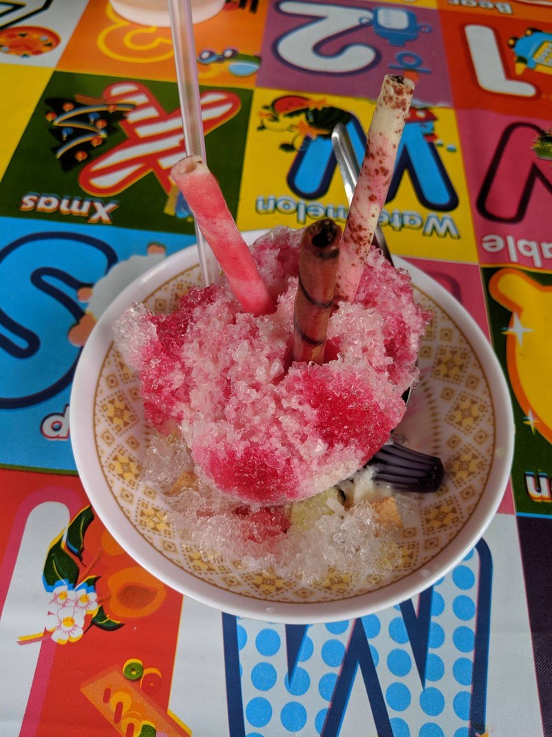 เป็นร้านที่อยู่ในซอยข้างโรงพยาบาลตรังค่ะ เผอิญผ่านมาแถวนี้แล้วรถเสีย เลยมานั่งรอร้านนี้ค่ะ555 สั่งน้ำแข็งไสมากิน ใส่ได้ทุกอย่าง มีพวกขนมปัง วุ้น เวอเฟอ ปีโป้ แต่แม่ค้าบอกใส่หมดก็ได้ ใจดีจัง เราไม่ชอบกินหวาน เลยสะ่งแบบไม่หวาน ไม่ใส่น้ำเชื่อม แต่ก้แอบหวานเพราะน้ำแดงอยุ่555 แล้วก็มีอาหารตามสั่งค่ะ แต่ไม่ได้สั่งมาทานดูเพิ่มเติม