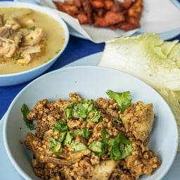 ร้านตั้งอยู่เส้นถนนศิริมังคลาจารย์ ตรงข้ามกับนิมานเหมินทร์ซอย9 ลักษณะร้านเป็นสไตล์สตีทฟู้ด แถวนี้ต้องรถตามในซอยโดยเฉพาะรถยนต์ แต่ถ้าเป็นมอเตอร์ไซค์จอดที่หน้าร้านได้ เมนูเด็ดของทางร้านคือหมูทอด ที่ทอดออกมาได้กำลังดี ส่วนน้ำพริกปลารสชาติดี ส่วนสามชั้นผัดพริกทำออกมาได้โอเค ทั้ง3อจ่างราดข้าวแค่40บาทถือว่าถูกและดี เข้ากับช่วงเศรษฐกิจแบบนี้ ส่วนเมนูอื่นยังไม่ได้ลอง เพราะของยังทำไม่เสร็จดูเพิ่มเติม