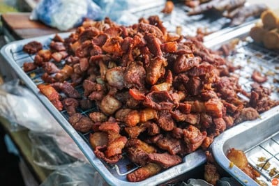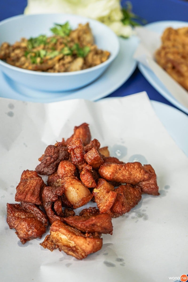 หมูทอดนายเพทาย ถ.ศิริมังคลาจารย์ สตรีทฟู้ดที่แท้ทรูครับ ขายแหมะอยู่ขอบทางเท้านี่แหละ ผ่านเห็นมาตั้งแต่สมัยเรียนแต่ไม่เคยคิดจะแวะเลย เพราะมันไม่ค่อยมีที่จอด เมนูเด่นคงเป็นหมูทอด มีทั้งหมูสามชั้น และเนื้อสัน ทอดเกรียม ๆ เค็ม ๆ นุ่มเพราะมีมันแทรก ถ้ากินกับข้าวเหนียวร้อน ๆ น้ำพริกแดง น้ำพริกหนุ่ม เด็ดเลย เมนูอื่น ๆ ก็มี เช่น ลาบคั่ว ผักกาดจอ แกงเทโพ แกงผักหวานปลาแห้ง เป็นต้น ผัดผักแล้วแต่วัน ราคาไ...อ่านต่อ
