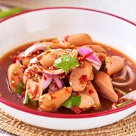 จานนี้เป็นยำหมูสามชั้นเพิ่มไข่แดงเค็ม สั่งแบบปกติไม่ได้เน้นอะไร 💰💰💰 ราคาปกติ150฿ เพิ่มไข่แดงเค็ม50฿ รสชาติออกหวานนำ เผ็ดปกติ ปลาร้าก็ไม่ค่อยโดดเท่าไร คิดว่ารสชาติแบบนี้หาทานได้ทั่วๆไปค่ะ แต่เดี๋ยววันหลังจะลองสั่งแบบอื่นทานดูค่ะดูเพิ่มเติม
