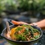 คาเฟ่ย่านปากเกร็ดที่มีพื้นที่กว้างขว้าง จัดบรรยากาศในสวนได้น่านั่งหลายมุม ร่มรื่นด้วยต้นไม้ใหญ่ น้ำตก และบ่อปลา และยังมีที่นั่งในห้องแอร์ด้วย อาหารจะเน้นไปที่จานเดี่ยวแบบง่ายๆอย่างข้าวไข่ข้น, ชุดอาหารเช้า, แซนวิช, สปาเก็ตตี้ เป็นต้น รสชาติดี ปริมาณพอเหมาะ ไม่ติดหวานหรือเค็มไป เมนูขี้เมาที่สั่งมาก็เผ็ดจัดจ้านเลย สลัดจานใหญ่ให้เยอะ มีเครื่องดื่มและเบเกอรี่หลากหลาย กาแฟสดหอมสดชื่น เค้กในตู้มีให้เล...อ่านต่อ