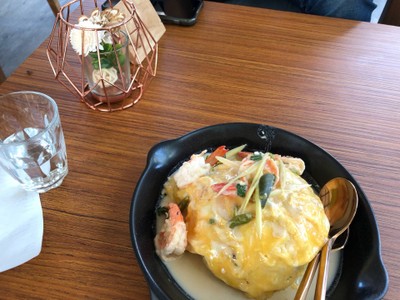 เมนูแนะนำนะคะ ข้าวไข่ข้นอร่อยค่ะ ทั้งที่เป็นทะเลและเขียวหวาน แต่ชอบเขียวหวานมากกว่ามีน้ำของเขียวหวานทำให้ไม่แห้งเกินไป เครื่องดื่มมีหลายเมนูทั้งคนรักกาแฟ กับอิตาเลียนโซดา ส่วนตัวชอบรสเปรี้ยวเลือก passion fruit รสชาติดีค่ะสำหรับคนชอบแนวนี้นะคะ บรรยากาศดีมาก มีทั้ง indoor ห้องแอร์แต่ตกแต่งแบบกระจกทั้งร้าน ในสวน outdoor จะเป็นสวน คนค่อนข้างเยอะ ราคาอาหารและเครื่องดื่มไม่แพง ถ้าเทียบกับรหลายร้าน...อ่านต่อ