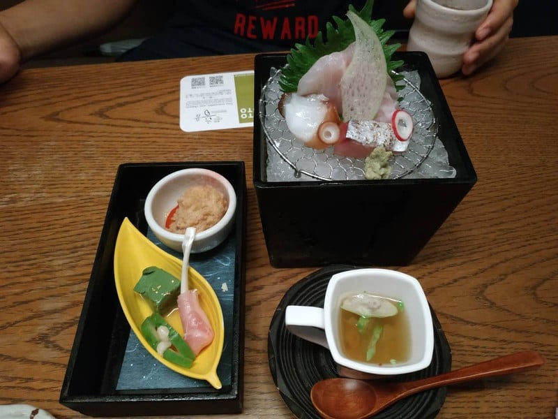 ตอนแรกกะจะทานซาซิมิ แต่เห็นราคาเลยขอลองเบาๆ มีแบบเซ็ต แต่ก็มาอย่างละจุ๋มจิ๋ม ภาพในเมนูเห็นเป็นสองชุด แต่ราคา 4500 yen คือ ราคาต่อชุดนะครับ ของมาอย่างละเล็กละน้อย ไม่พอชายฉกรรจ์ 2 คน ที่มาลองแน่นอน เด๋วแวะป้ายหน้า ร้านนี้เคยมีคนโพสต์ในกระทู้แนะนำใน ueno แต่ผมว่าไปป้ายหน้าน่าจะคุ้มค่ากว่า บริการไม่มีคนเดินให้กดปุ่มเรียกเอา น่าจะเน้นความเป็นส่วนตัวในการพูดคุยของลูกค้าดูเพิ่มเติม