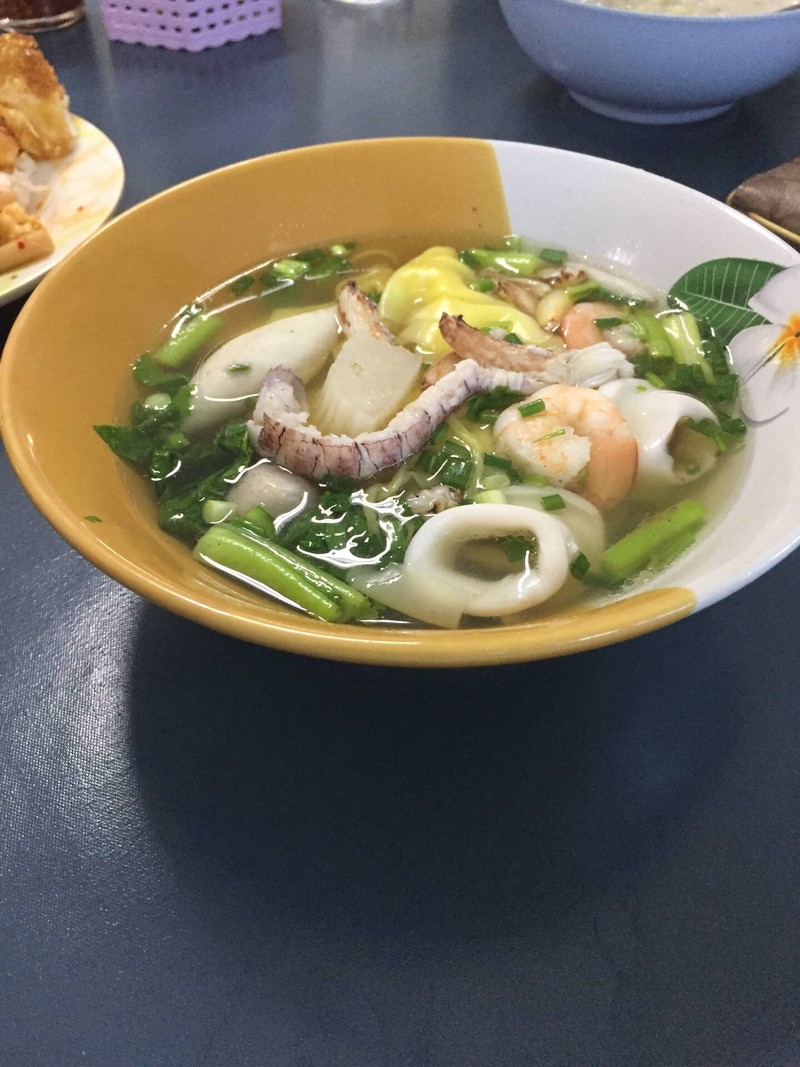 สำหรับคนเดินทางมาเที่ยวเกาะช้าง แล้วมาเช้าที่จังหวัดตราด แนะนำให้มาทานร้านอาหารเช้า บะหมี่ เกี้ยว ก๋วยเตี๋ยว มีข้าวราดแกงตักไม่อั้น ตัก 40 บาท/ครั้ง อาหารโอเคดูเพิ่มเติม