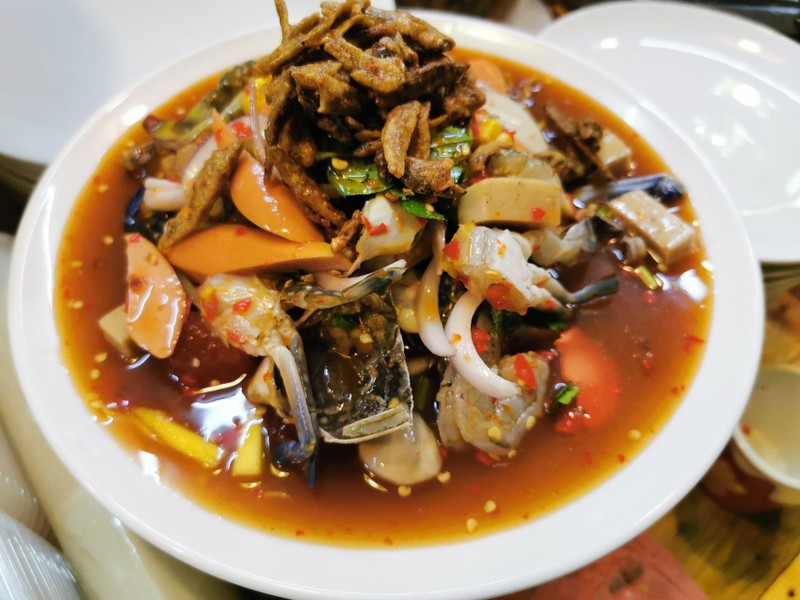 ยำรวมเว่อร์ ใส่เกือบทุกอย่างในเมนู ยกเว้น หมูสามชั้นทอด เห็ดทอด คลุกน้ำยำรสเด็ด มีให้เลือก ปลาร้าและไม่ปลาร้าครับ
