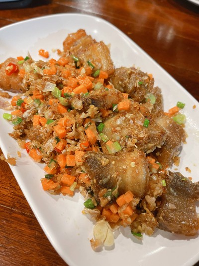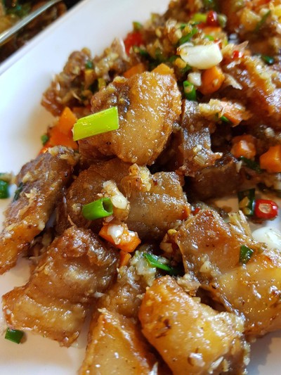 ร้านมีที่จอดรถกว้าง ส่งอาหารไป 4 อย่าง เห็นคนค่อนข้างเยอะ คิดว่าอาจจะนาน แต่.... รอไม่นานเลย ที่หิวๆ หายได้ทันที หมูสามชั้นคั่วเกลือ อร่อยมาก รสชาดจัดจ้านจริง หักดาว 1 ดวง สั่งต้มยำปลาคัง ให้แยกพริก เพราะยายกินเผ็ดไม่ได้ สุดท้ายได้ต้มยำปลาคังพร้อมพริกในหม้อไฟดูเพิ่มเติม