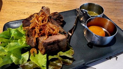 ร้านเนื้อดรายเอจคุณภาพเยี่ยม กับร้าน 35 Dry Aged Beef ลองสั่งเมนูเนื้อส่วนเทนเดอร์ลอยน์ หรือเนื้อสันในมาลอง เนื่องจากอยากลองเนื้อส่วนที่ไม่มีไข่มันมาก แต่มีความนุ่ม ซึ่งเนื้อนุ่มจริง ส่วนเมนูลิ้นวัวก็นุ่มดี อร่อย นอกจากเมนูเนื้อ เมนูอื่น ๆ พวกข้าวมันเนื้อ, ซุปเห็ดทรัฟเฟิล, ซี่โครงหมู BBQ, พอร์คชอป, มันบด โดยรวมก็อร่อยเช่นกัน ราคาโดยรวมอาจจะสูงนิดนึงเพราะเป็นเนื้อดรายเอจ ราคาอาหารยังไม่รวม...อ่านต่อ