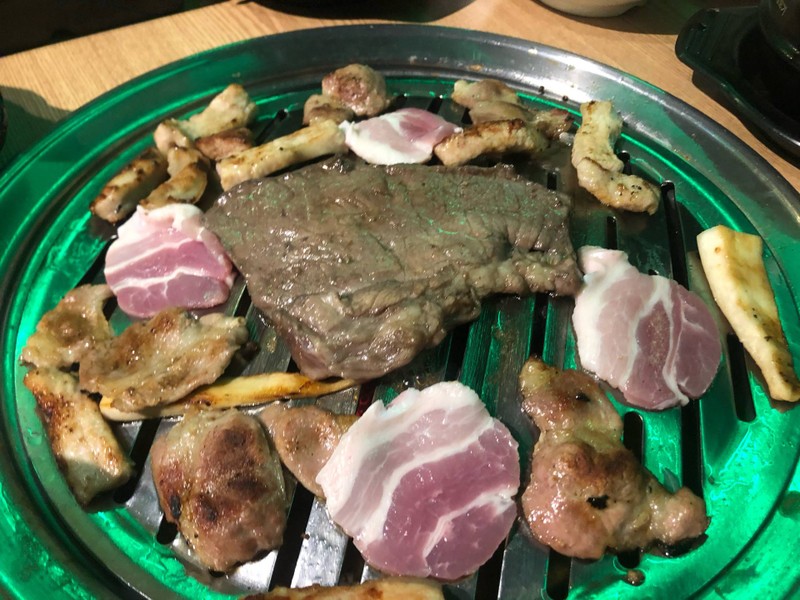 ร้านบุฟเฟต์หมูเกาหลีที่มีเจ้าของร้านเป็นคนเกาหลีแท้ๆ ที่ร้านมี 2 ราคา คือ 299฿ และ 349฿ ต่างกันที่มีกุ้งและปลาหมึก มีค่าน้ำรีฟิลคนละ 49฿ มีโค้ก สไปร์ต่างๆค่ะ ที่ร้านมี 2 ชั้น ตัวพวกกิมจิจะมี line อาหารให้ตักอยู่ชั้นล่าง ส่วนตัวพวกหมูสั่งได้เลย ชอบสันใน ชิ้นใหญ่สะใจมาก ตัวหมูซอสไวน์แดงอร่อยดี มีน้ำจิ้มให้เลือกหลากหลาย เปลี่ยนเตาได้หลายครั้ง อร่อยดีค่ะ สะดวกสบาย ไม่ต้องแย่งคนเยอะดีดูเพิ่มเติม